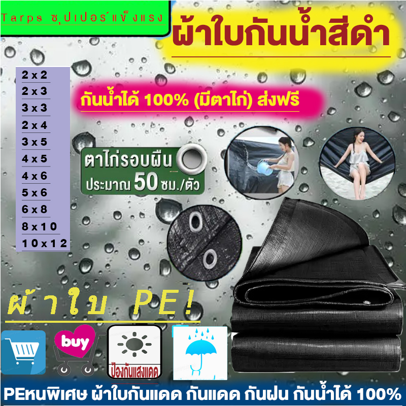 แผ่นผ้าใบ PVC กัน UV 5% สีดำ เหนียวมาก (รั่วยาก ถ้าไม่โดนทิ่ม) ใช้ปูบ่อน้ำพุ จัดสวนภายในภายนอก แบบกว้าง ผ้าใบเอนกประสงค์ ขนาดเมตร กันน้ำกันรังสียูวี ซูเปอร์เย็นนนน ผ้าใบกันแดดกันฝนPVC ชีท รุ่น Standard ตาไก่ทุกเมตร ผ้าใบคลุมของ คลุมสินค้า Covertech ราคา 50 บาท