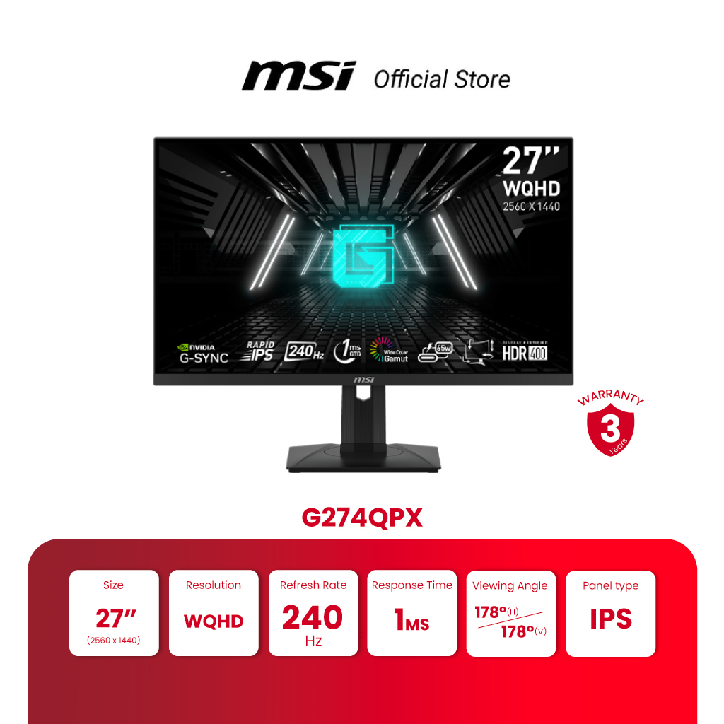 MSI GAMING MONITOR OPTIX G274QPX 27" | WQHD | Rapid IPS | 240Hz | 1ms (จอเกมมิ่งคอมพิวเตอร์) [Pre-order จัดส่งภายใน 7-15 วัน] ราคา 11,150 บาท