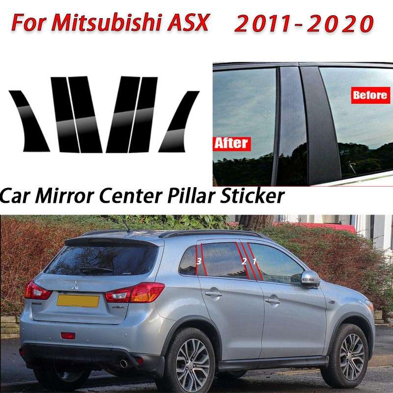 Mitsubishi ASX สติกเกอร์ติดรถสีดำมันวาวสำหรับประตูหน้าต่างเสากลาง B C เสาขอบกันริมฟิล์มการตกแต่งกระจกสำหรับ AXS GA 2011-2020อุปกรณ์เสริม .AutoMaxion