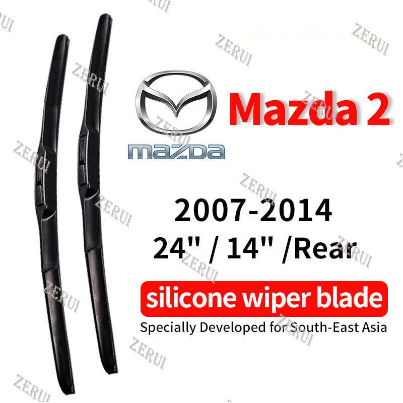 Top Zone ชุดใบปัดน้ำฝน2ชิ้นสำหรับ ด้านหน้าด้านหลังรูปแบบซิลิโคนใบปัดน้ำฝนทรงกล้วยสำหรับ2007ถึง2014ใบปัดน้ำฝน SUV Mazda 2ที่ปัดน้ำฝนกระจกหลัง