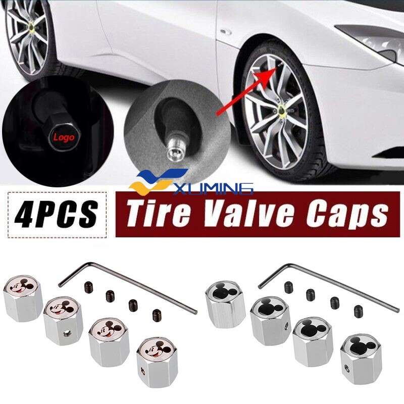 4ชิ้นมิกกี้เมาส์รถวาล์วยางฝาจุกล้อครอบคลุมสำหรับฮอนด้าลมยางเชฟโรเลตบีเอ็มดับเบิลยูสติ๊กเกอร์ Suzuki Mazda อุปกรณ์เสริมซูบารุ FastFit Auto