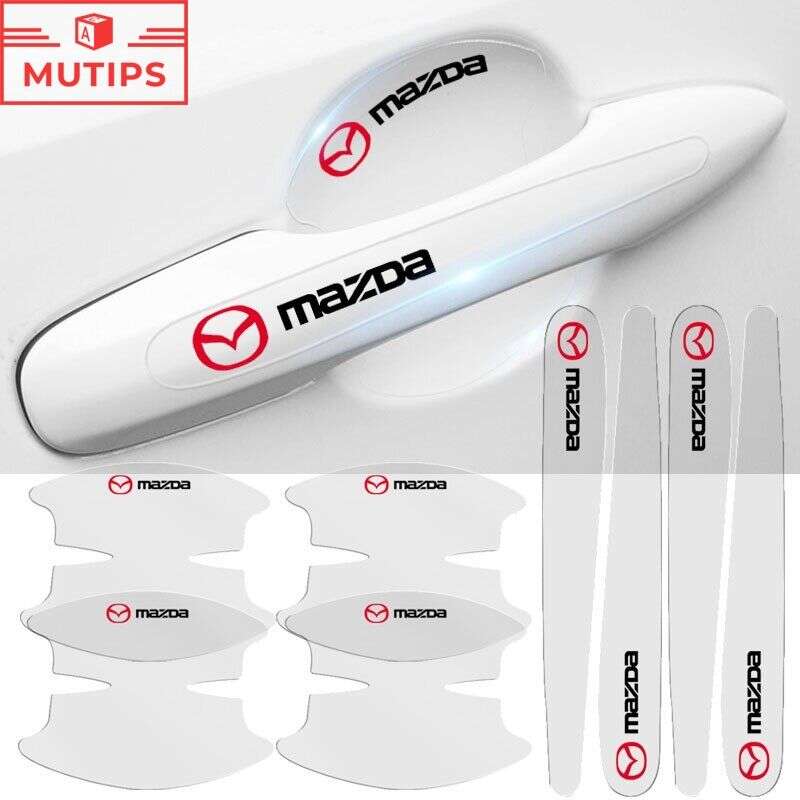 8ชิ้นสติกเกอร์ที่จับประตูรถฟิล์มกันรอยกันรอยขีดข่วนโปร่งใสสำหรับ Mazda 2 3 CX5 CX8 CX30 CX3 Mazda2 6 5 Bl Gh Gp FastFit Auto