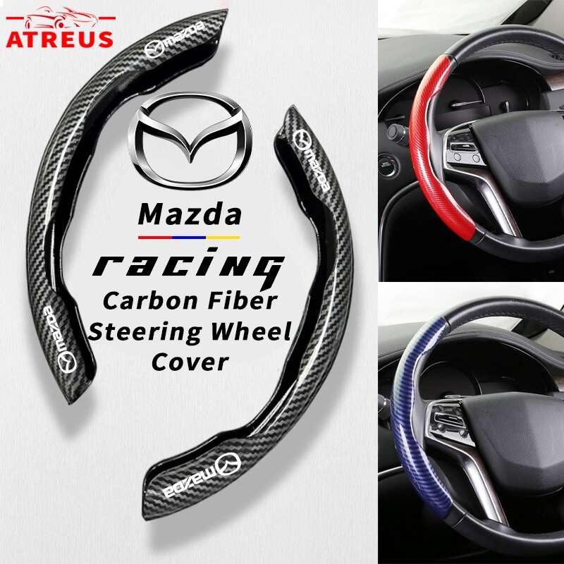 มาสด้าคาร์บอนไฟเบอร์ฝาครอบพวงมาลัยพวงมาลัยรถยนต์เคสกันลื่นพวงมาลัยสำหรับมาสด้า2 3 CX5 CX30 CX8 CX3 Mazda2 6 5 CX9 BT50 Top Auto Zone