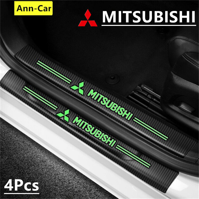 【Ann-Car】4pc/Set Car Luminous Door Side Step Sill Strip Carbon Fibre Leather Anti Scratch Protector Sticker Fiber for Mitsubishi Pajero Asx Outlander Xl 3 Lancer Glowing in the dark