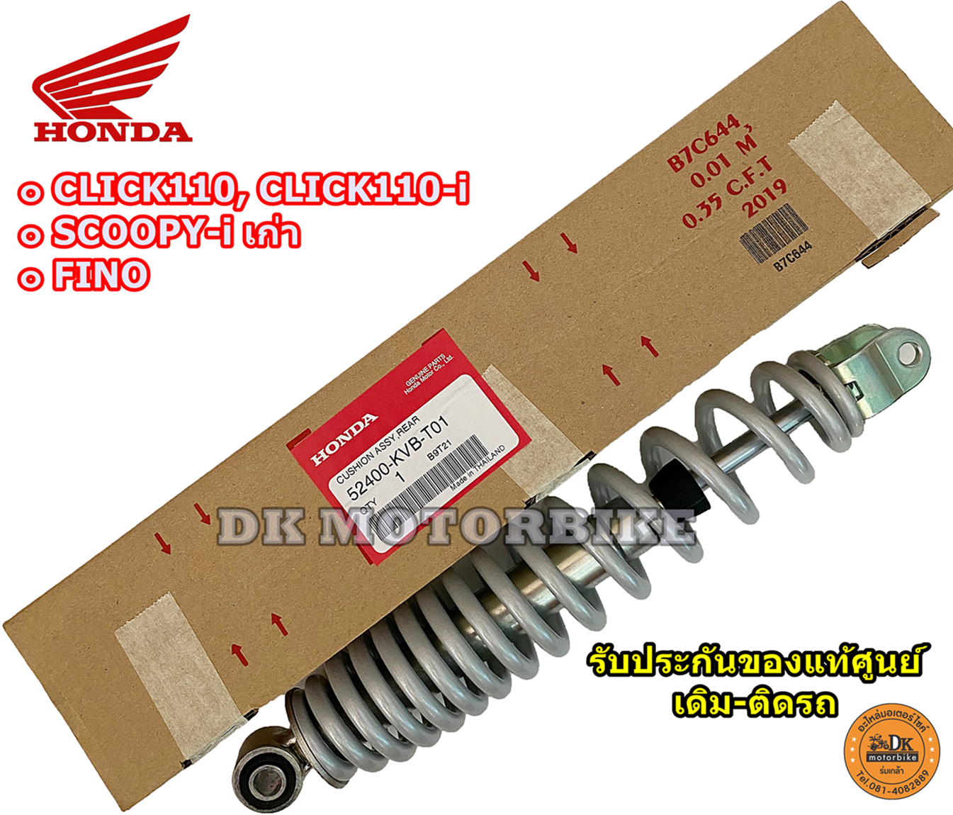 โช๊คหลัง CLICK110, CLICK110-i, SCOOPY-i รุ่นตัวแรก, FINOใส่ได้ (รับประกันของแท้ศูนย์-เดิม-ติดรถ100%) 52400-KVB-T01