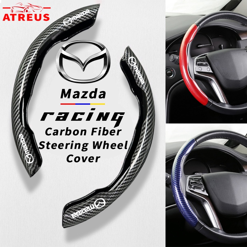 Mazda Carbon Fiber Steering Wheel Cover Anti Slip Car Steering Wheel Protector Cover For Mazda 2 3 CX5 CX30 CX8 CX3 Mazda2 6 5 CX9 BT50 ราคา 351 บาท