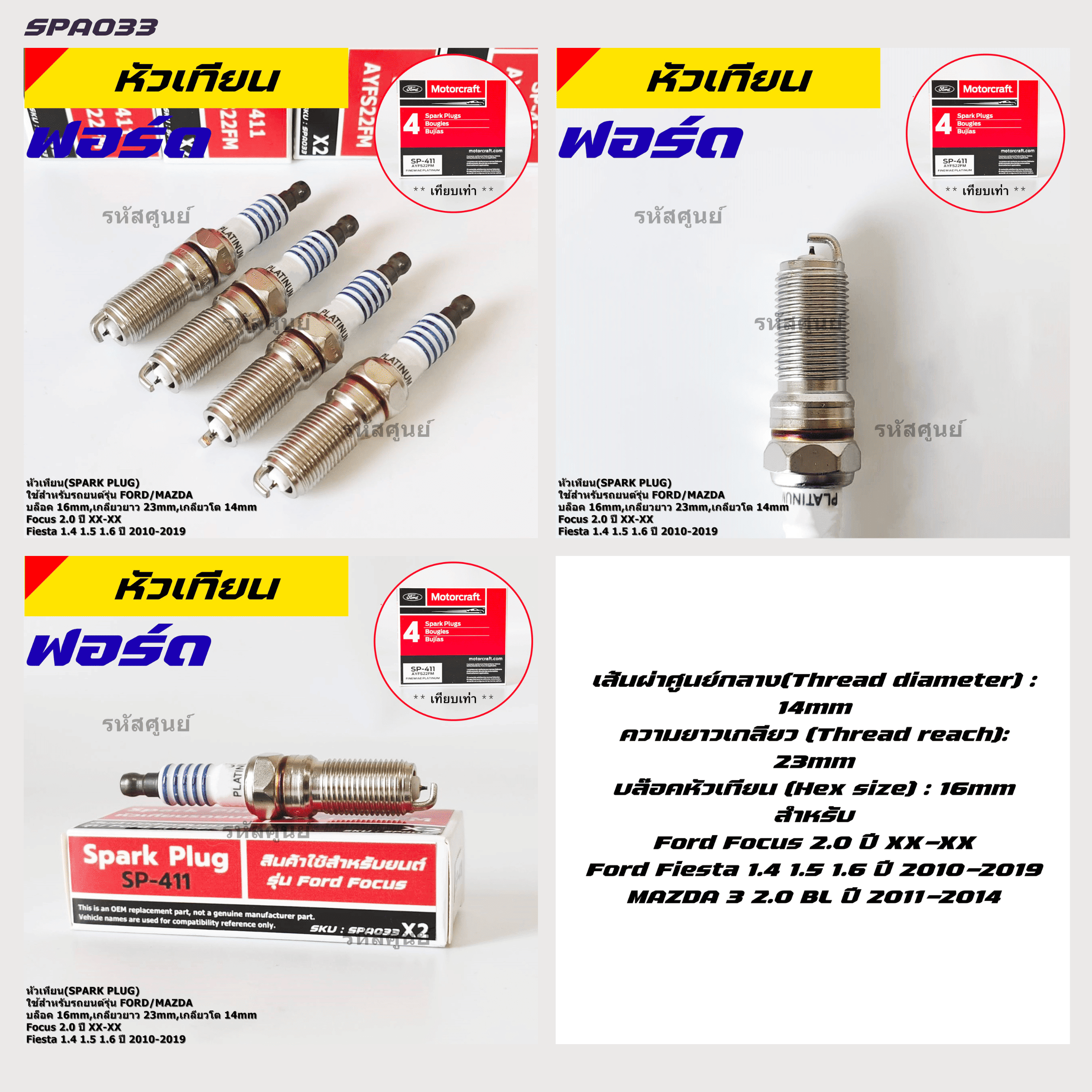 (Price/4 Pieces)***Special Price*** Genuine New Spark Plugs Ford Platinum, Needle Tip, Long Thread Fiesta 1.4,1.5,1.6 Year 10-19 Focus 2.0 (Year Xx),Mazda 3 2.0 Bl Year 11-14 Sp-411,Ayfs22Fm (Ready to Ship) ราคา 650 บาท