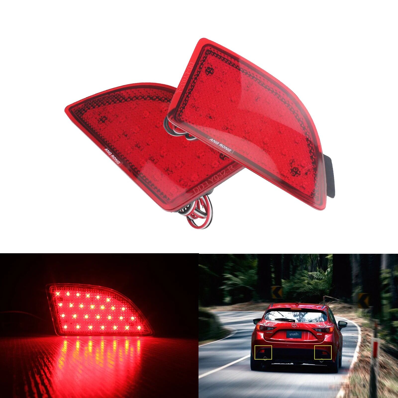 Angrong ตัวสะท้อนแสง bemper belakang LED เลนส์สีแดง2x อุปกรณ์ตัดไฟเบรคท้ายสำหรับ MAZDA 3 Axela BM BL 5D hatchback