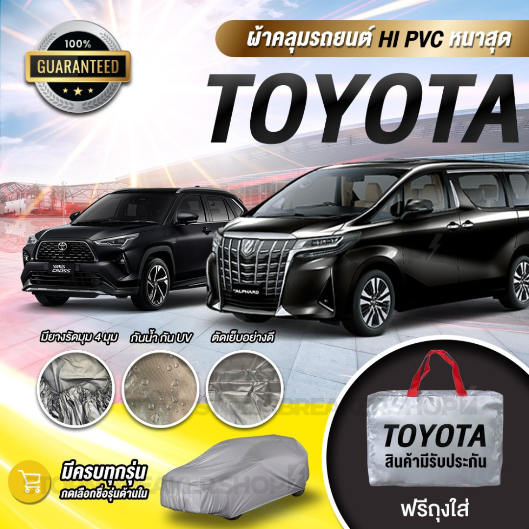 ผ้าคลุมรถ TOYOTA ตรงยี่ห้อ ตรงรุ่น มีให้เลือกถึง 4 เนื้อผ้า ตัดเย็บอย่างดียางรัดมุมกันปลิว งานรับประกัน