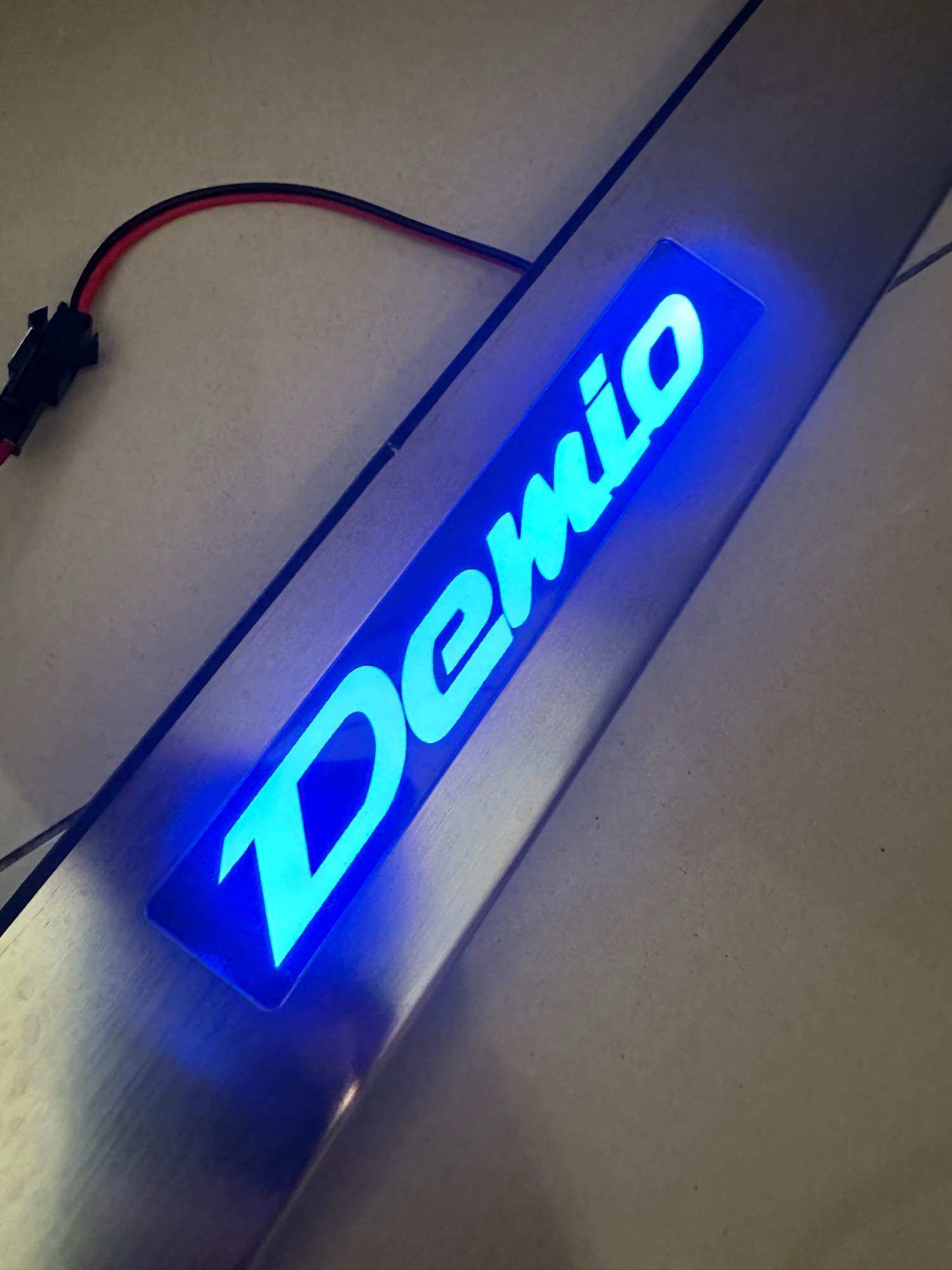 สแตนเลสครอบบันไดมีไฟ สำหรับ Mazda2 2012 โลโก้ Demio หน้า+หลัง ติดตัังง่ายไฟสว่างป้องกันรอยได้ดี ราคา 650 บาท