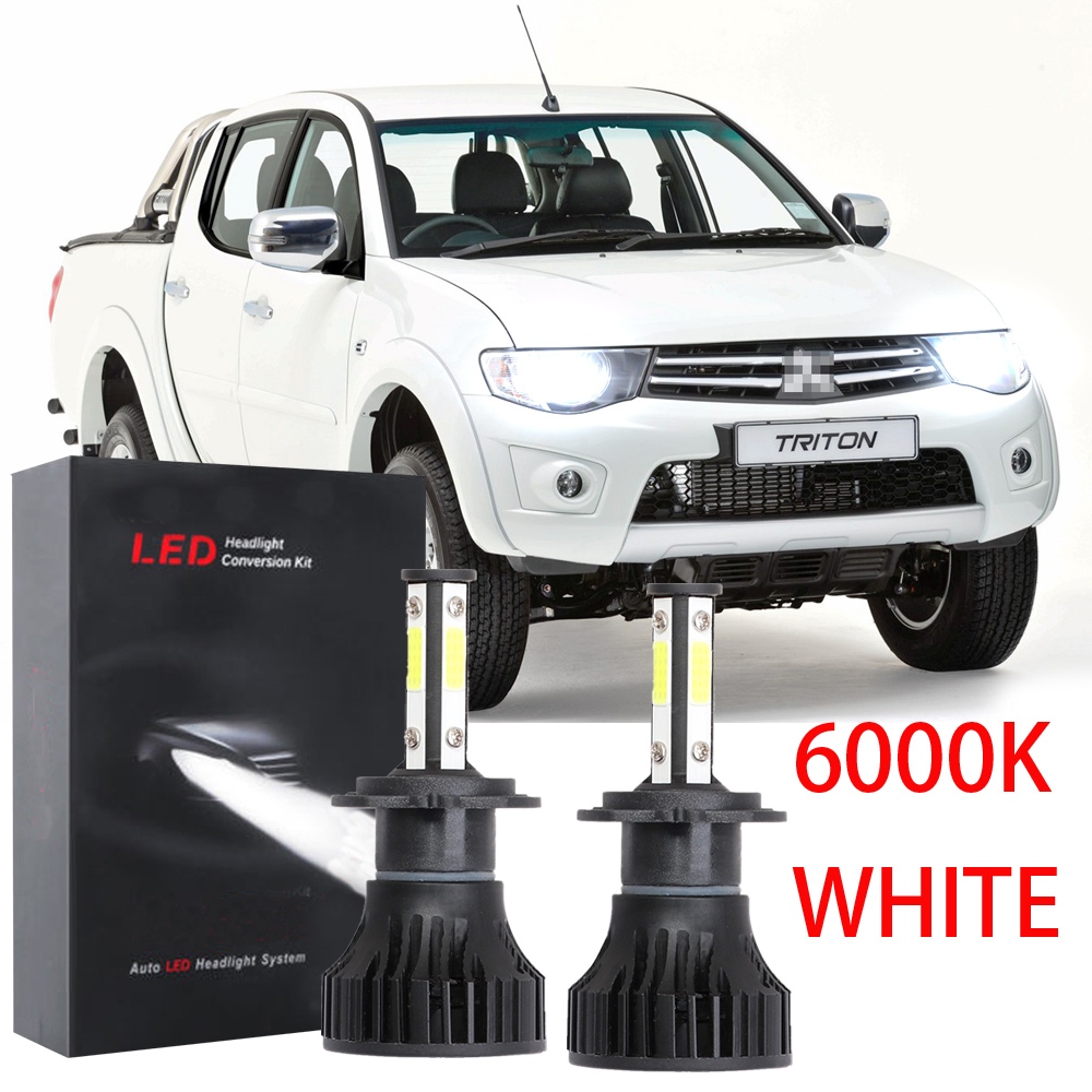 6000k สีขาว LED ไฟหน้าไฟหน้าหลอดไฟ 12V-24V ชุด 2 สําหรับ Mitsubishi Triton (Mk1) 4th Gen (2007 2008 2009 2010 - 2015) plug and play