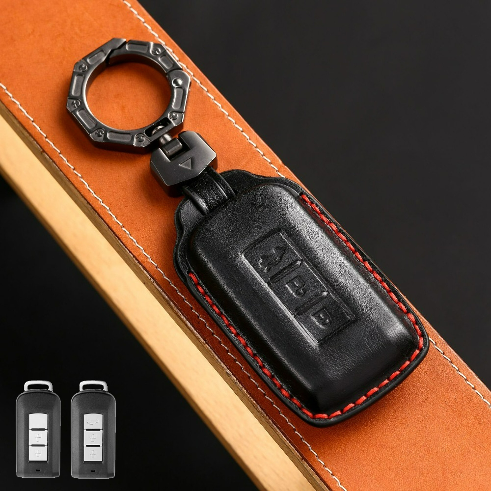 Genuine Cowhide Leather Smart Car Key Fob Cover Case Holder Chain Buttons Protection For Mitsubishi Xpander Cross Mirage G4 Pajero Montero Outlander Sport Strada Triton ASX Attrage Lancer Keyless Remote Shell Protector Keychain ราคา 315 บาท