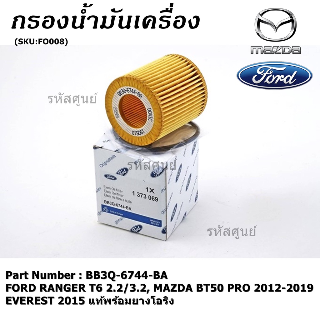 Engine Oil Filter for Ford Ranger T6 2.2/3.2, Mazda Bt50 Pro 2012-2019 and Everest 2015 with Rubber O-Ring, Code Bb3Q-6744-Ba ราคา 35 บาท