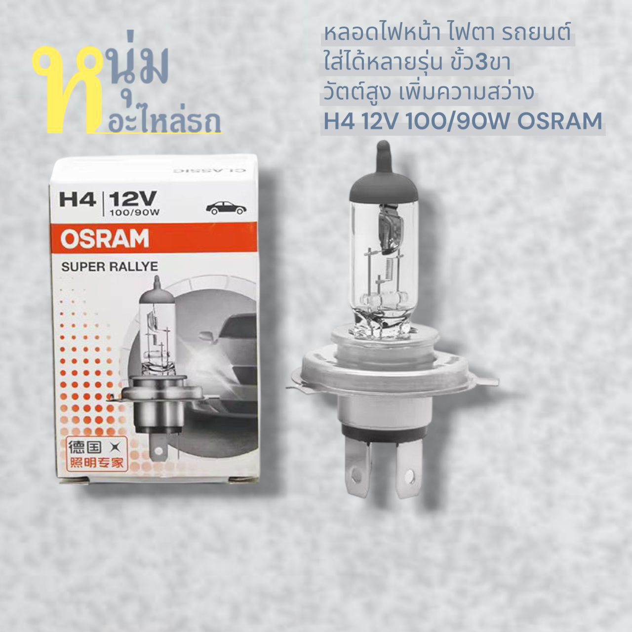 หลอดไฟตา ไฟหน้า H4 12V 100/90W วัตต์สูงเพิ่มความสว่างสูง รถเก๋ง กระบะ ใส่ได้หลายรุ่น TOYOTA NNISSAN ISUZU MAZDA ราคา 90 บาท*ส่งฟรี
