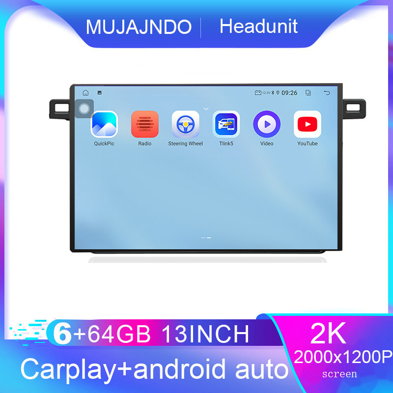 MUJAJNDO 13inch 6+64GB for-toyota-rav4-2013-2018 android15 2k qled screen voice command carplay android auto 2din car stereo android head unit support mirror link reverse view steering control gps navigation q13