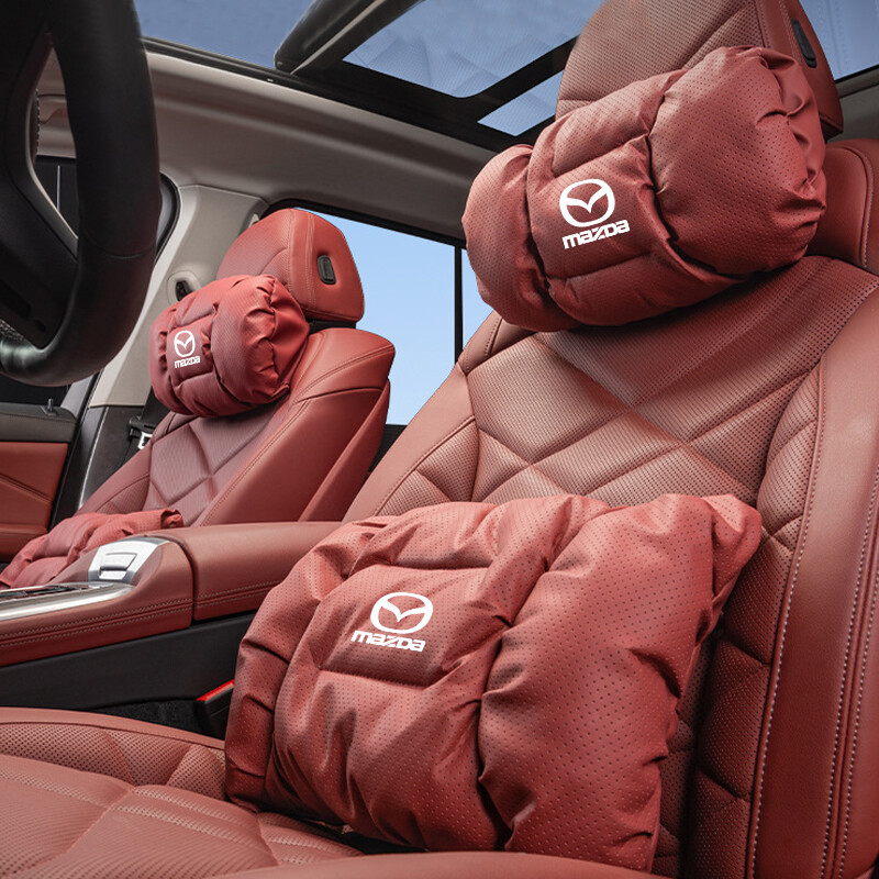 Soft Nappa Leather Car Neck Pillow Car Waist Pillow Comfortable Car Headrest Lumbar Support Seat Accessories For Mazda 2 3 5 6 CX3 CX30 CX5 CX8 CX9 Mazda 3 2 Mazda 6 BT50