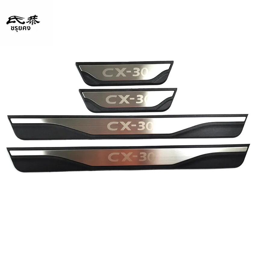 แผ่นกันรอยขอบประตูรถยนต์ 4 ชิ้น/ชุด ผลิตจาก ABS และสแตนเลส สำหรับ Mazda CX-30 CX30 CX 30 ปี 2019-2025 อุปกรณ์ตกแต่งรถยนต์