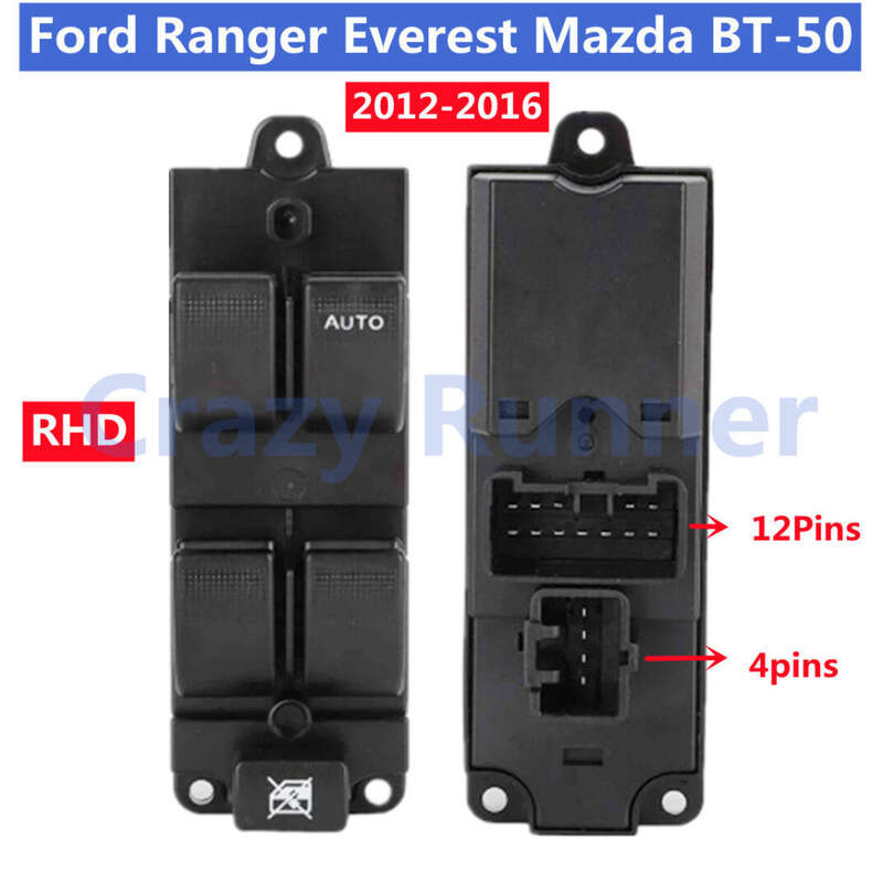PuraAutoRepair 12+4PINS Front Right Electric Master Power Window Switch for 4door Ford Ranger Everest Mazda BT-50 2012-2016 Ford Laser Lynx 1999-2005 Mazda 323 family BJ 1998-2001 Haima 7 for Mazda 6 2003-2005