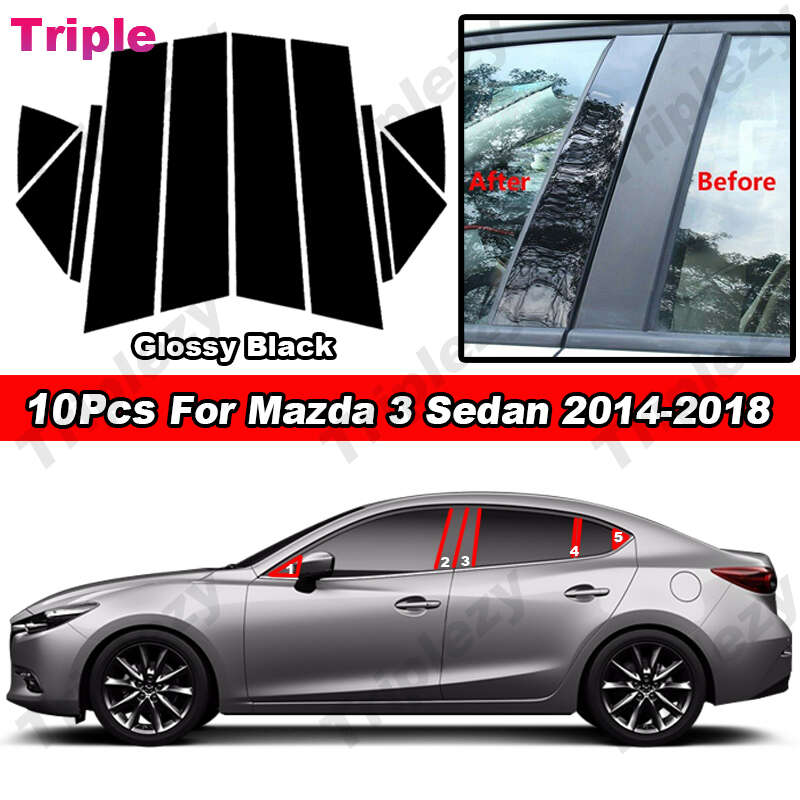 PuraAutoRepair 10ชิ้นเปียโนมันวาวสีดำ/รถคาร์บอนไฟเบอร์รูปลอกประตูเสาของตกแต่งขอบหน้าต่างสติ๊กเกอร์ฝาครอบอุปกรณ์วัสดุ PC สำหรับ Mazda 3 BM BN Sedan 2014 2015 2016 2017 2018 ราคา 249.72 บาท