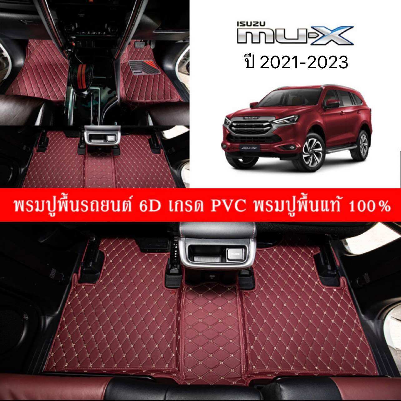 Car Floor Mats THพรมปูพื้นรถยนต์เข้ารูป 100% [สำหรับรถ ISUZU MUX ปี2021-2023] พรมปูพื้นรถยนต์หนังแท้ เกรด A (PVC) ขนาดฟรีไซส์ พรมปูพื้นรถยนต์ 6D สินค้าพร้อมส่ง
