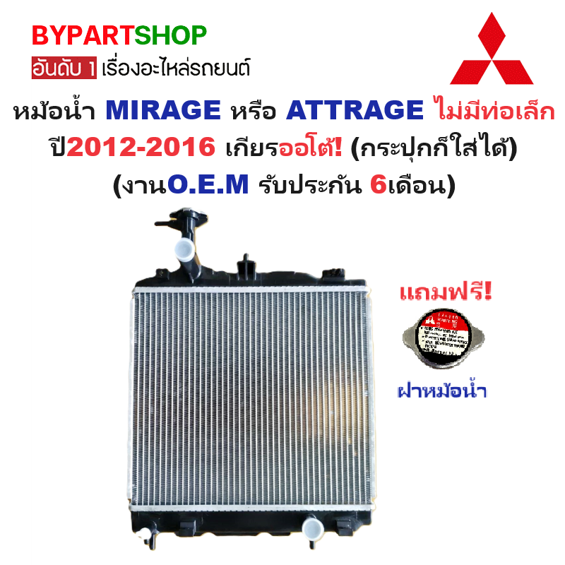 หม้อน้ำ MITSUBISHI MIRAGE(มิราจ)-ATTRAGE(แอททราจ) ไม่มีท่อเล็ก ปี2012-2018 เกียรออโต้ (กระปุกใส่ได้) (ประกัน 6เดือน)