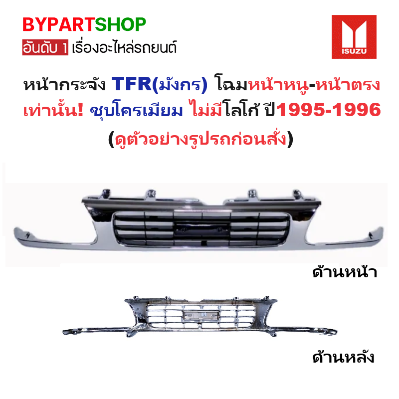 หน้ากระจัง ISUZU TFR(มังกร) โฉมหน้าหนู-หน้าตรง ชุบโครเมียม ไม่มีโลโก้ ปี1995-1996 (รหัส:TFR'95 ตรง-ชุบ) ราคา 1,475 บาท