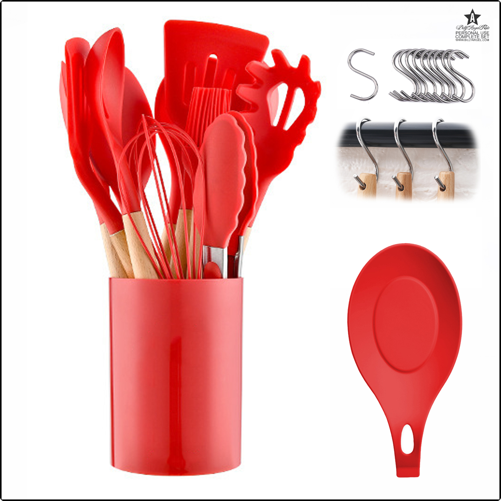 [lmcp45] Silicone Kitchenware Cooking Utensils Set Non-stick Cookware Spatula Shovel Egg Beaters Wooden Handle Kitchen Cooking Tool Set