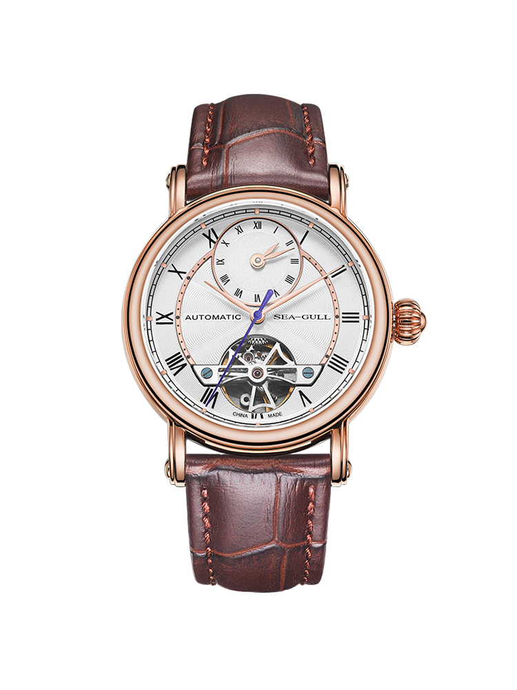 นาฬิกาข้อมือชาย Seagull Mechanical แบบธุรกิจ สายหนัง ช่องว่าง สองโซน เทอร์โบ 6041 กลไก 40 มม. น้ำหนัก 14.5 มม.