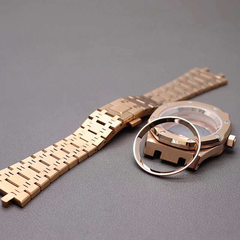 Rose G Old 41มิลลิเมตรหรูหราผู้ชายนาฬิกากรณีสร้อยข้อมือสำหรับ Seiko Nh35 Nh36เคลื่อนไหว28.5มิลลิเมตรหน้าปัดไพลินแก้วเหล็กบทแหวน