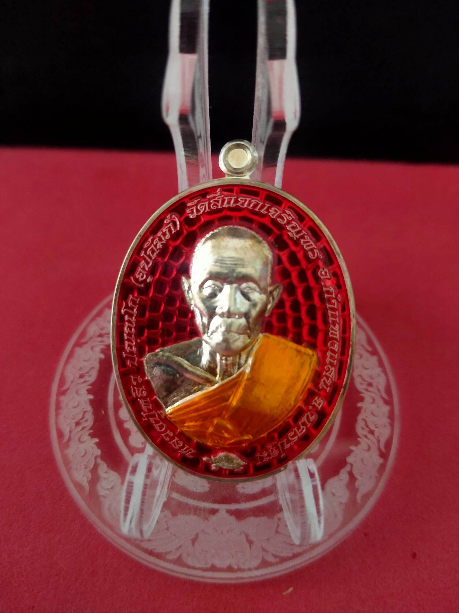 เหรียญหลวงปู่หลิว ปุณณโก อุปถัมภ์ รุ่นพลิกชีวิตชนะจน เนื้อเงินลงยาแดง เลข144 วัดสี่แยกเจริญพร จ.นครปฐม จัดสร้างปี2563