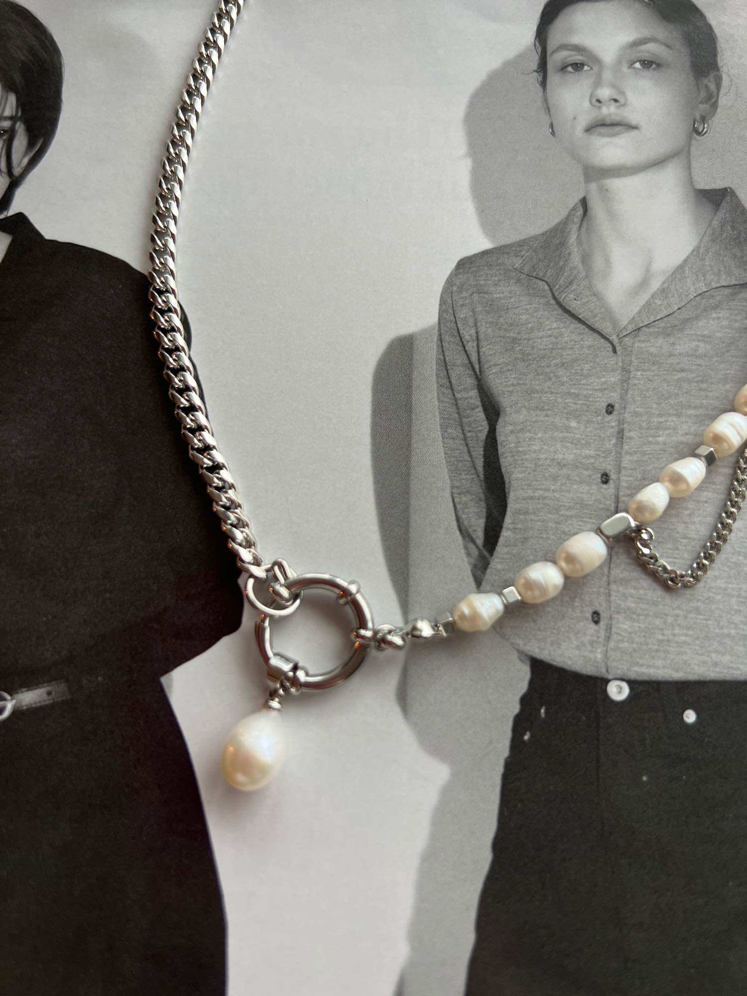 Freshwater Pearl Hematite Necklace Modern Chain Pearl Drop Design