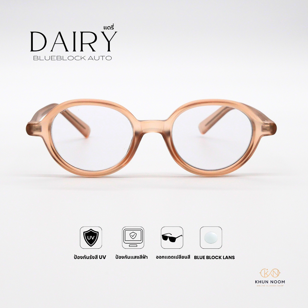 แว่นตาสายตายาว เลนส์บลูบล็อคออโต้ รุ่น DAIRY ''เเดรี่'' 8009 กรองแสงสีฟ้า ในร่มเลนส์ใส ออกแดดเปลี่ยนสีเป็นเทาดำ ราคา 1,290 บาท