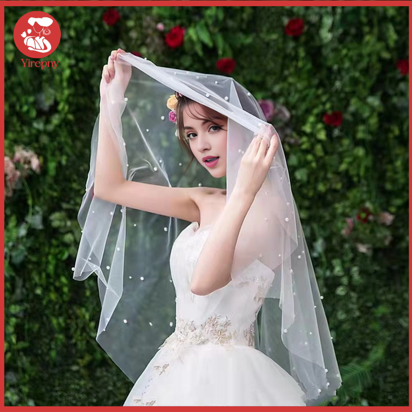 Yirepny Bridal Veil with Faux Pearl Embellishment White Mesh Single Layer Wedding Veil Bridal Headpiece Hair Accessories ราคา 119.56 บาท