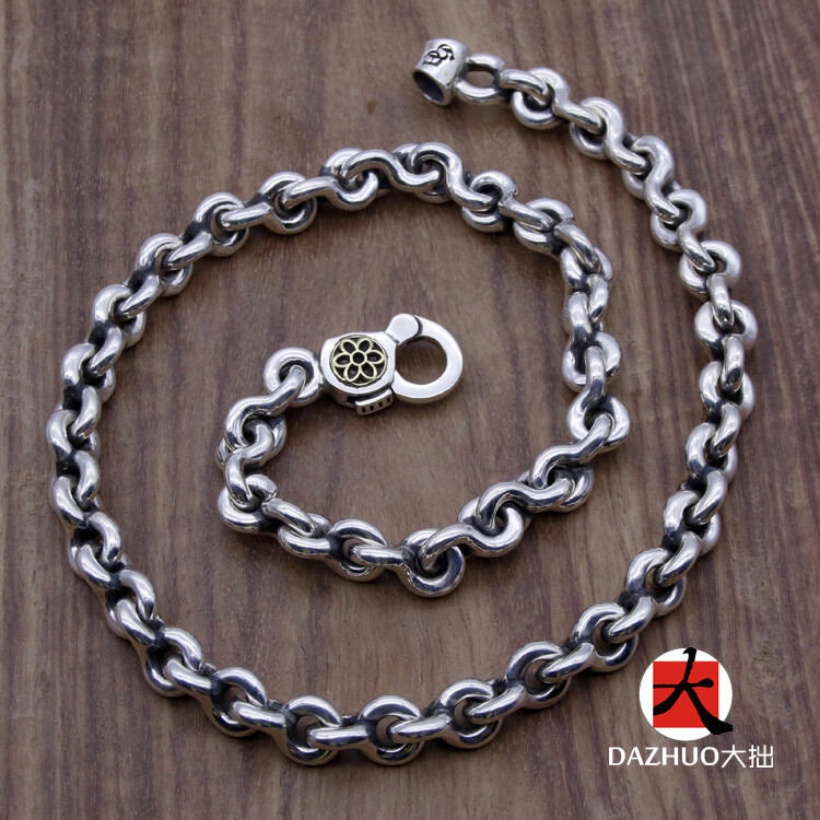 Handmade 925 Sterling Silver Men's Necklace Sakura Buckle 8-Link 10mm Thick Fashionable Jewelry Unisex Silver Accessory ราคา 17,620 บาท