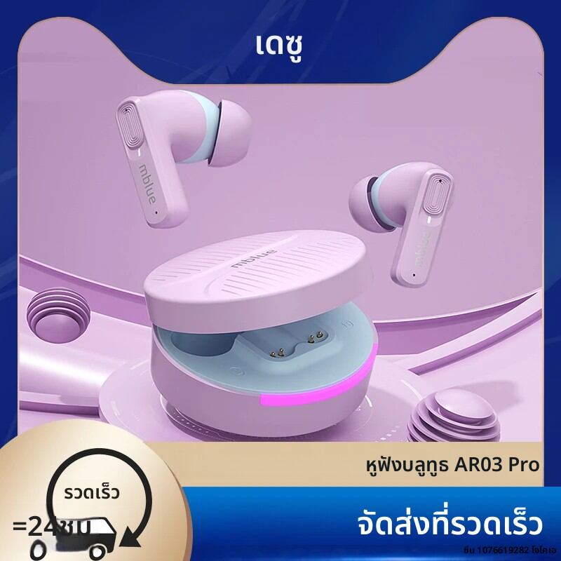 MEIZU mblue AR03 Pro ไร้สายบลูทูธ 5.3 หูฟังสเตอริโอเกมเพลงหูฟัง AAC/SBC HD Mic ชุดหูฟัง 400mAh ยาวสแตนด์บาย ราคา 400.81 บาท