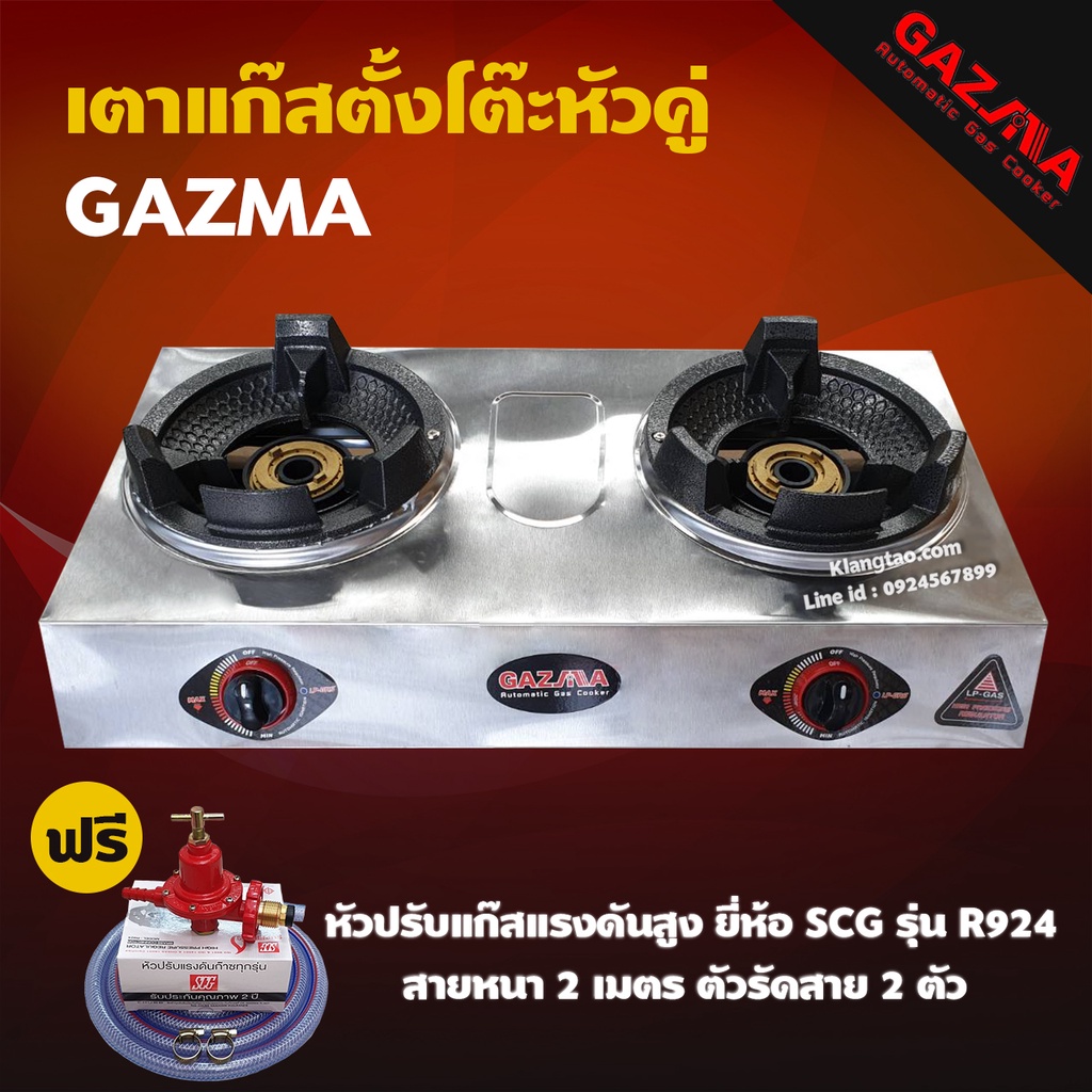 GAZMA เตาแก๊สตั้งโต๊ะหัวคู่ เตาเร่ง เตาแม่ค้า หัวเตาKB4 จุดติดอัตโนมัติ รุ่น GMC-STL2KB3.5-AUTO (หัวปรับแรงดันสูงครบชุด) ราคา 2,250 บาท