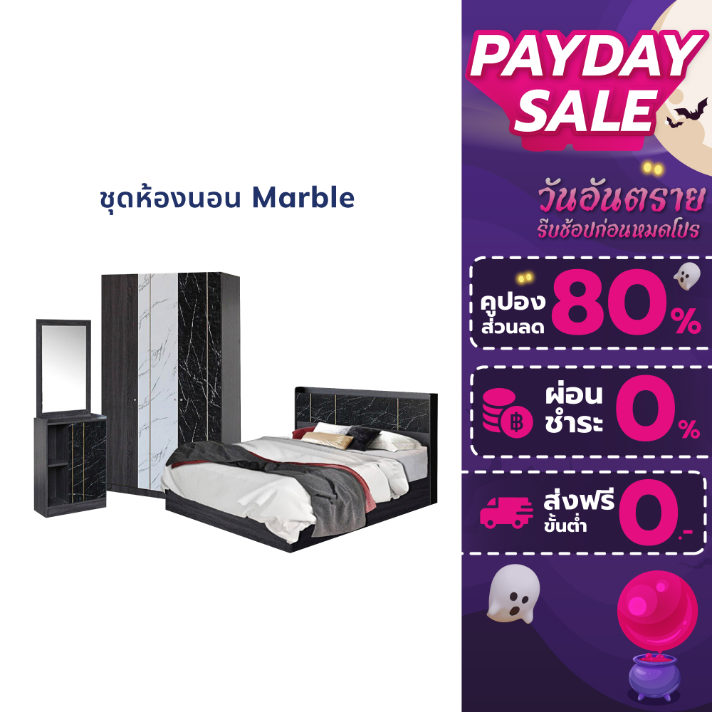 Solomon beige marble bedroom set in one set, available in 2 white/black 5/6 ft. ราคา 10,900 บาท