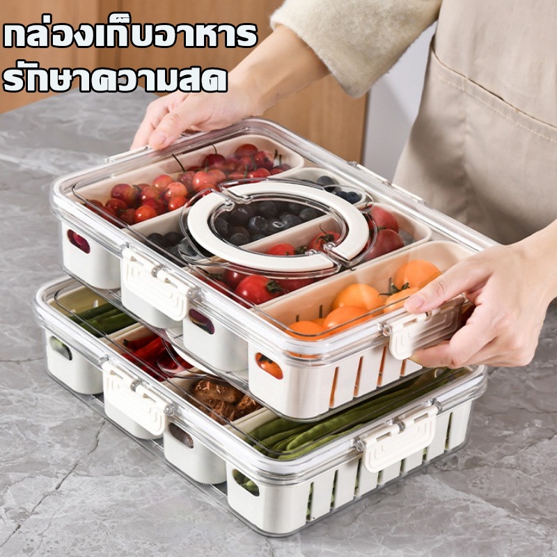【Freedom_lz】กล่องเก็บอาหาร กล่องใส กล่องผัก แบ่งช่อง ระบายน้ํา พร้อมฝาปิด ปิดผนึก รักษาความสด ราคา 149 บาท