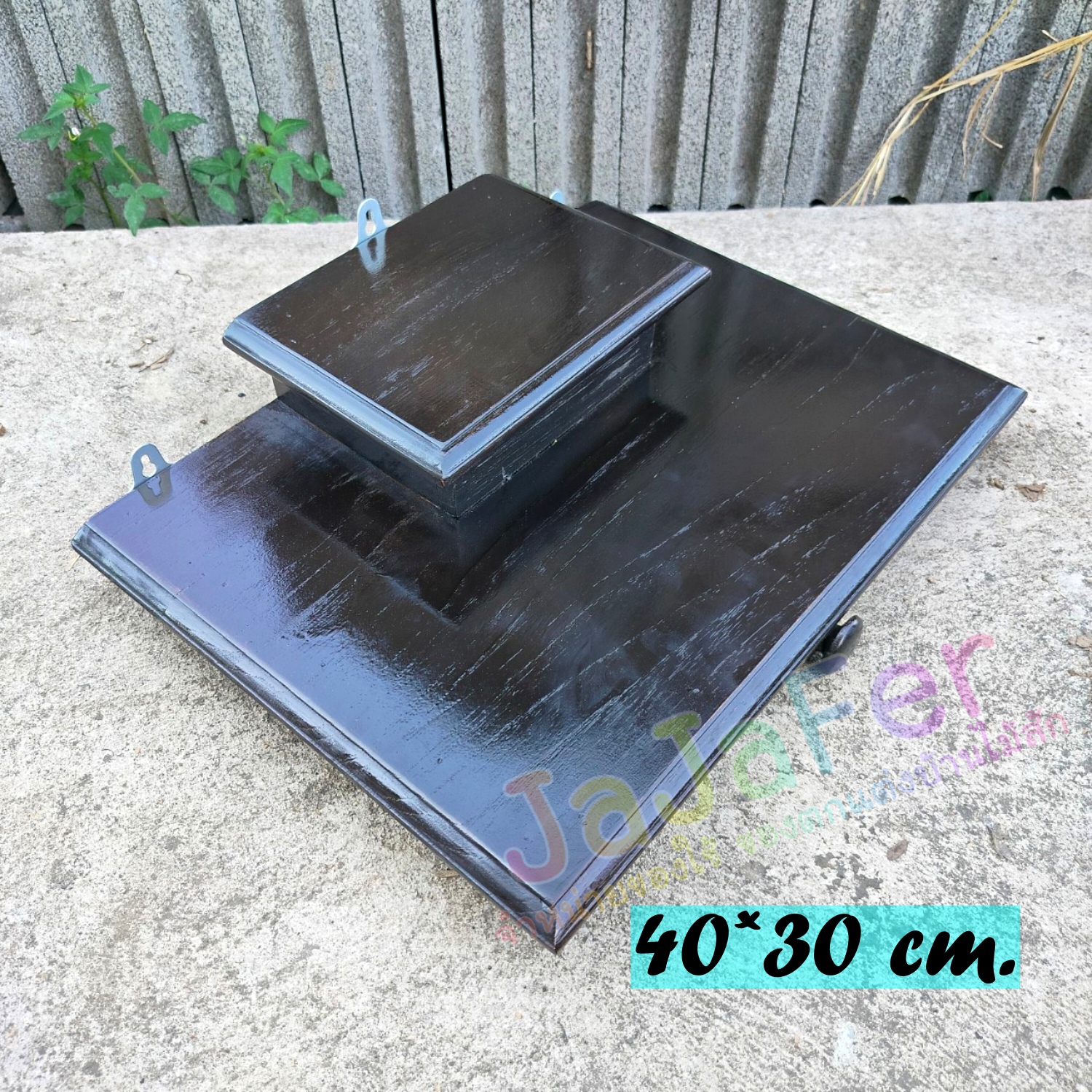 JA หิ้งพระ หิ้งพระไม้สักติดผนัง หิ้งไอ้ไข่ ขนาด 40*30 ซม. (ยอด20*15 ซม.) งานไม้สักแท้ สีดำ
