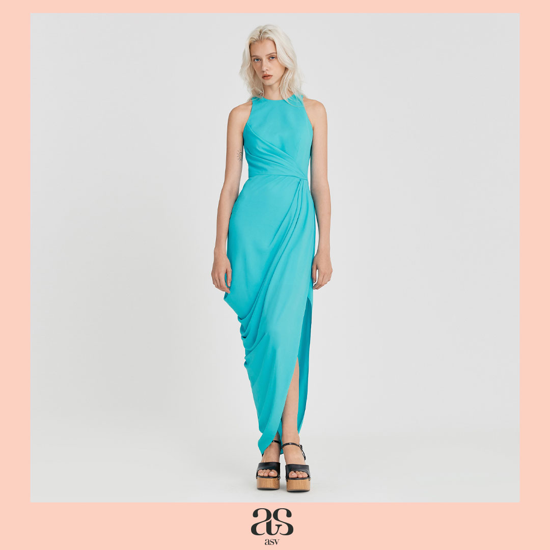 [asv aw24] Ashly Draped Dress เดรสผู้หญิง คอกลม แขนกุด แต่งเดรปทั้งตัว