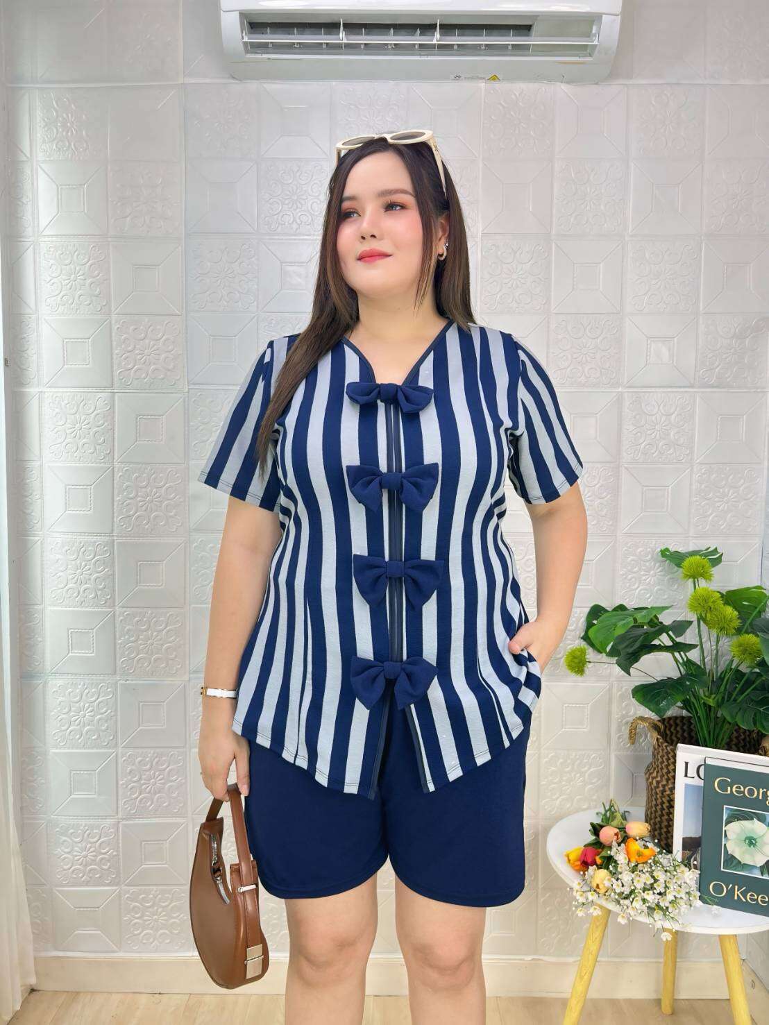 ชุดเซตสาวอวบอ้วน Miss M.A.Closet สาวพลัสไซส์ 2 ชิ้นเสื้อแฟชั่น & กางเกง ผู้หญิง Lady Clothing Women