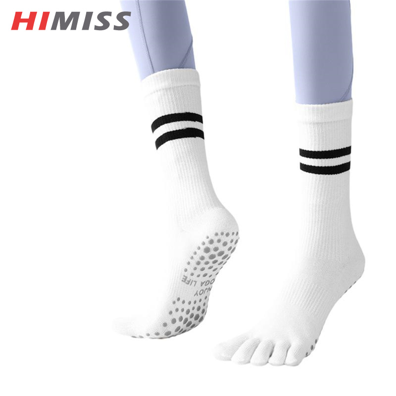 HIMISS Women Five Finger Yoga Socks With Grips Hospital Anti Skid Socks Dye Cushioned Crew Socks For Pilates, Ballet, Barre, Barefoot