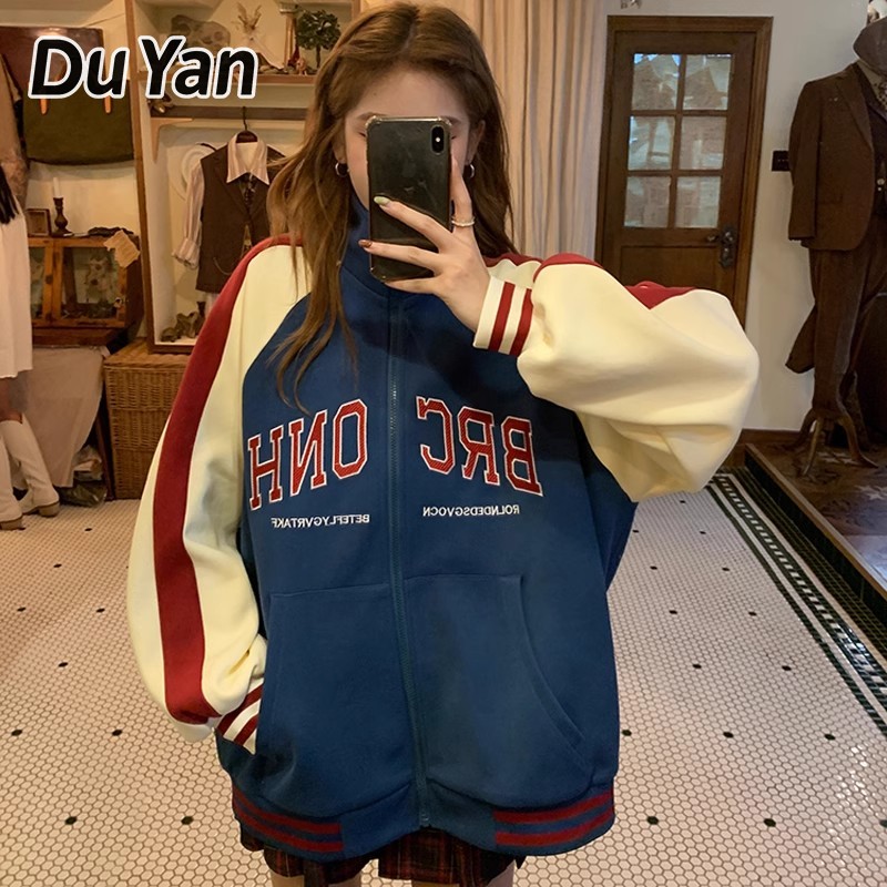 Du Yan women's autumn and winter stand-up collar pregnant women American retro loose jacket baseball jacket cardigan coat Sports Jacket