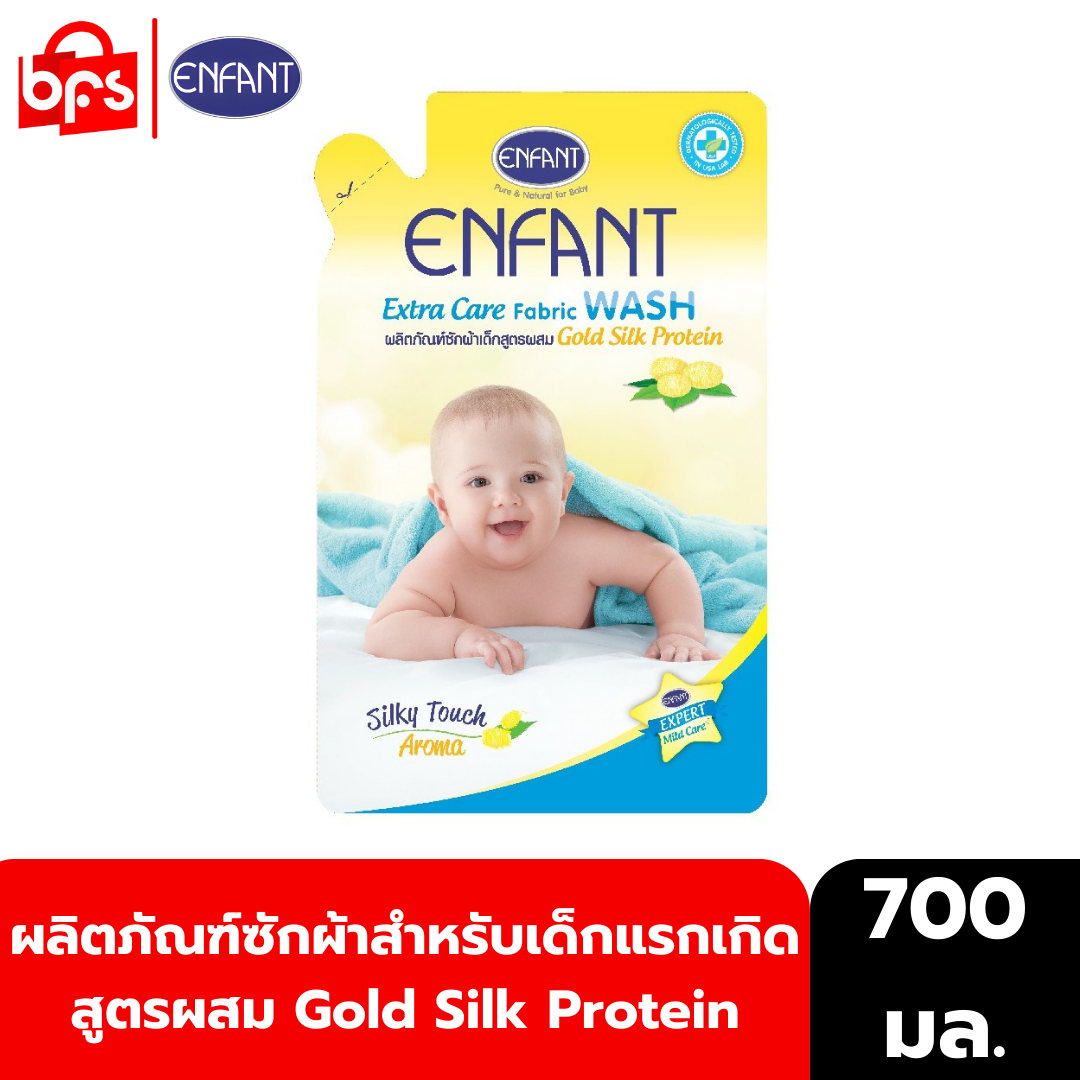 ENFANT EXTRA CARE FABRIC WASH 700ml. น้ำยาซักผ้าสำหรับเด็ก แรกเกิดและถนอมผิวบอบบาง สูตรผสม Gold Silk Protein ราคา 69 บาท