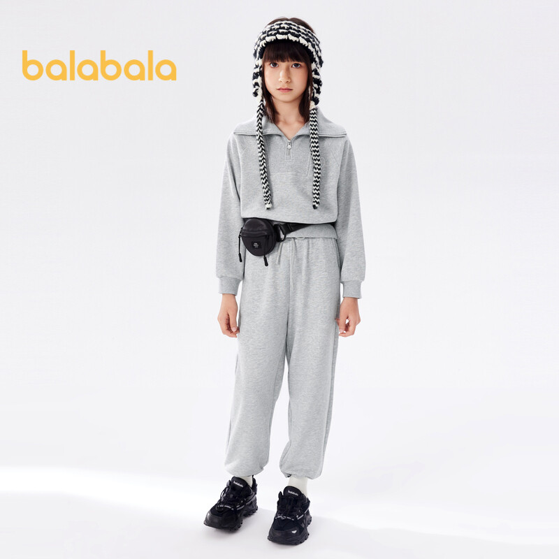 Balabala Children's Clothing Girls Set Stylish Spring Autumn Big Children Long-Sleeve Casual Sports Solid Color Two-Piece Trendy