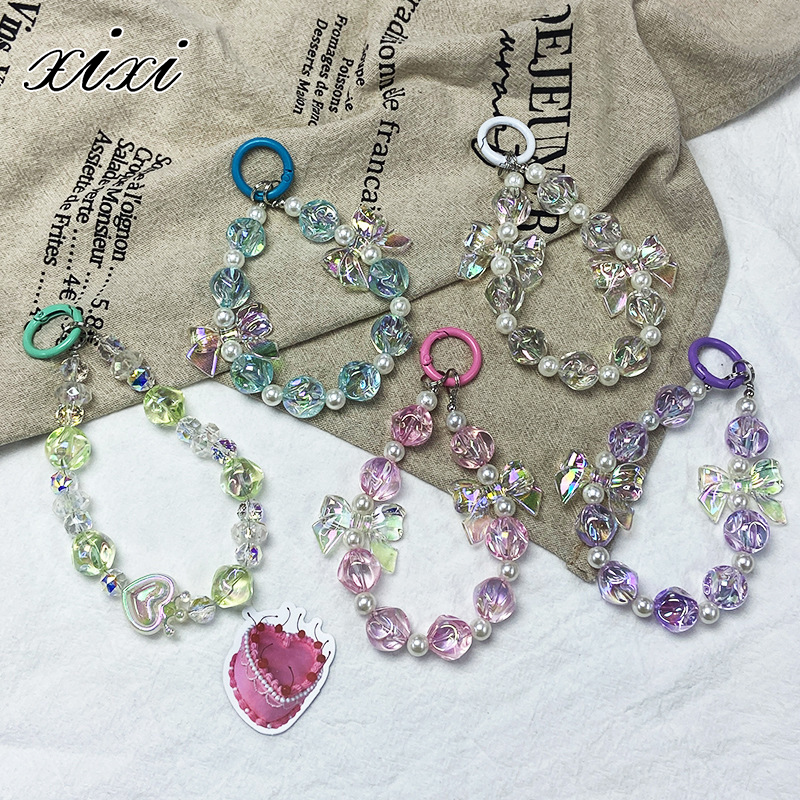 XiXi สายคล้องมือถือประดับดอกไม้ลูกปัดไข่มุกและคริสตัลสไตล์ชิคๆ สำหรับผู้หญิง